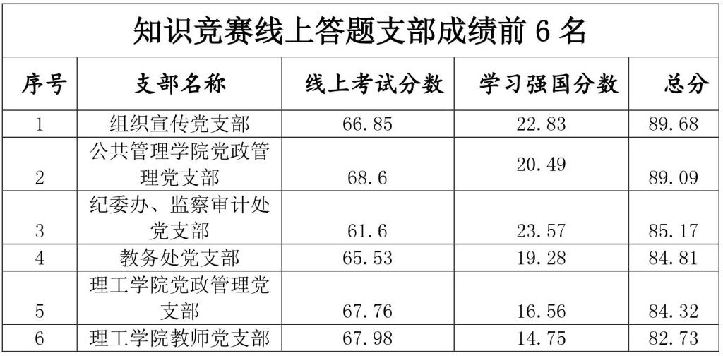 知识竞赛线上答题支部成绩前6名