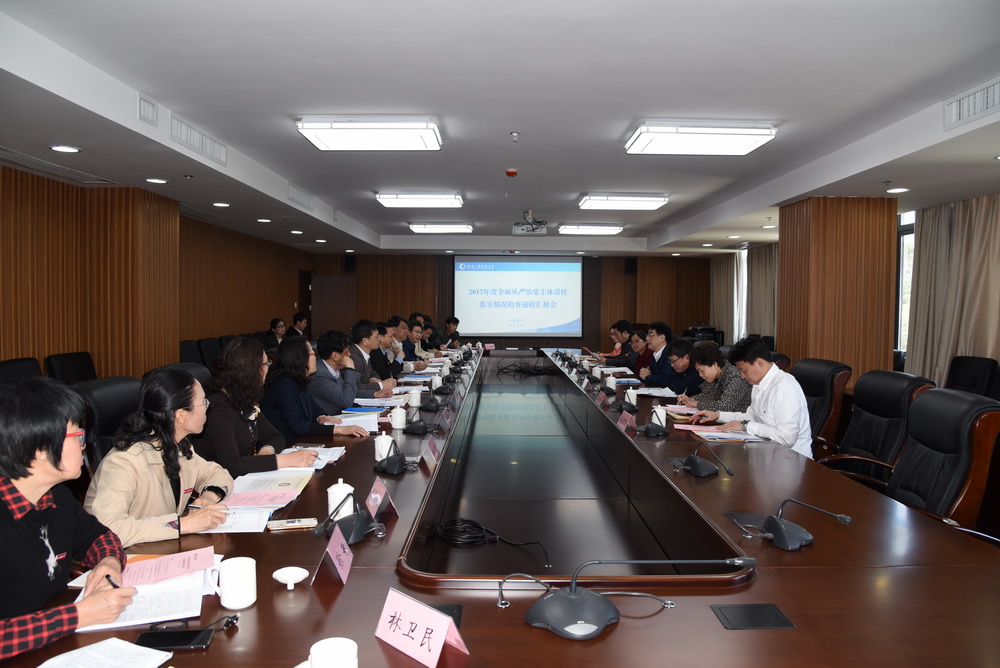 汇报会上,党委书记陈兴炎从坚定不移抓好党的政治建设、持之以恒正风肃纪、坚决整治“微腐败”和作风问题、牢牢把握意识形态工作领导权等四个方面向检查组汇报了学校2017年度全面从严治党主体责任落实情况。汇报会后,检查组通过个别访谈、实地检查、重点抽查、现场测试等多种形式进行了全面细致的检查。