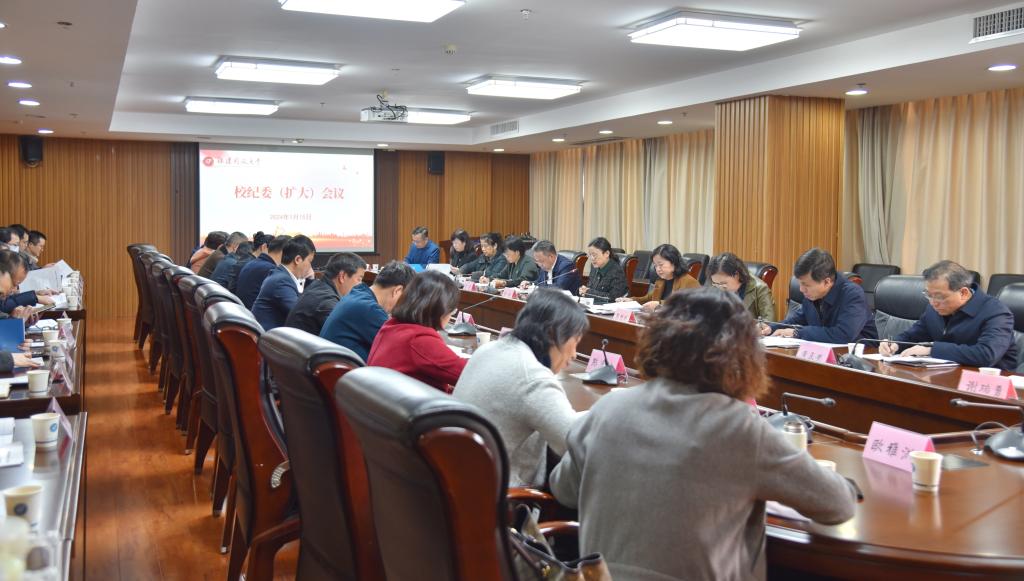 2024年1月15日下午,校党委委员、纪委书记、监察专员李琳主持召开校纪委(扩大)会议,传达学习贯彻二十届中央纪委三次全会、省纪委十一届四次全会精神,组织学习新修订的《中国共产党纪律处分条例》以及省纪委监委关于规范政商交往行为推动全面构建亲清政商关系的意见及指导案例,征求对校纪委工作的意见建议,并对委员提出工作要求。校纪委委员、基层党组织纪检委员、纪检监察室全体人员参加会议。