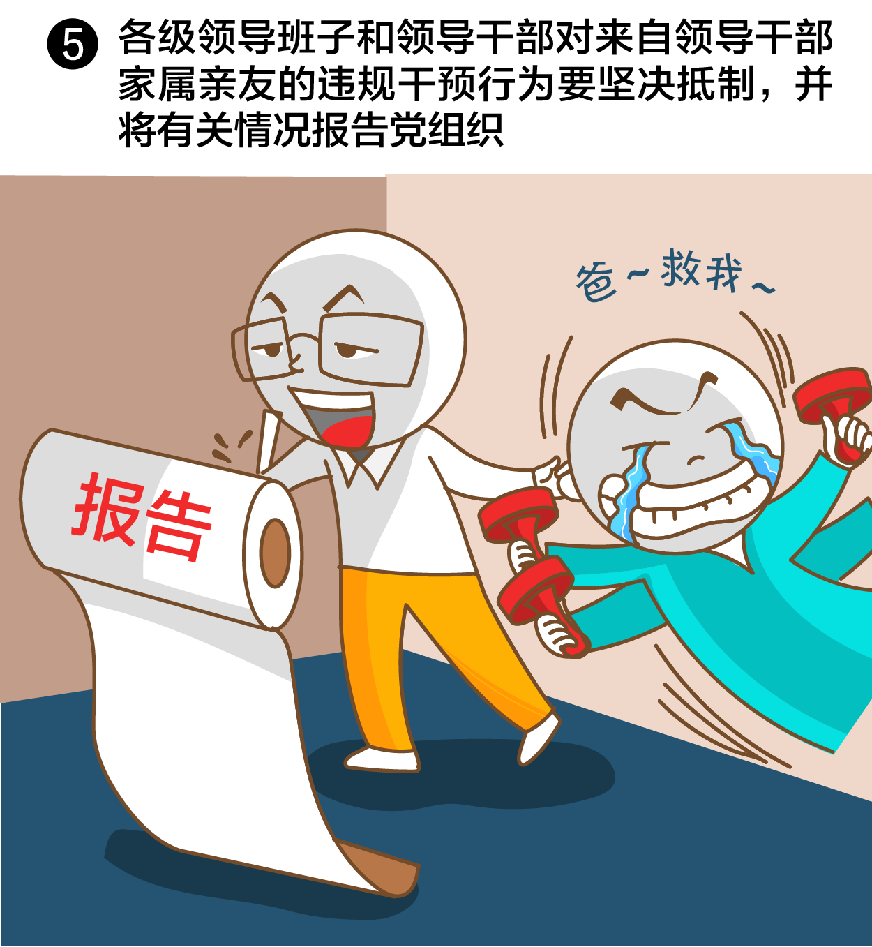 领导干部特别是高级干部必须注重家庭、家教、家风,教育管理好亲属和身边工作人员。严格执行领导干部个人有关事项报告制度,进一步规范领导干部配偶子女从业行为。禁止利用职权或影响力为家属亲友谋求特殊照顾,禁止领导干部家属亲友插手领导干部职权范围内的工作、插手人事安排。各级领导班子和领导干部对来自领导干部家属亲友的违规干预行为要坚决抵制,并将有关情况报告党组织。
