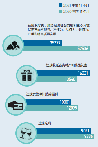 三、锲而不舍纠“四风”——2021年1-11月查处违反中央八项规定精神问题数据解读